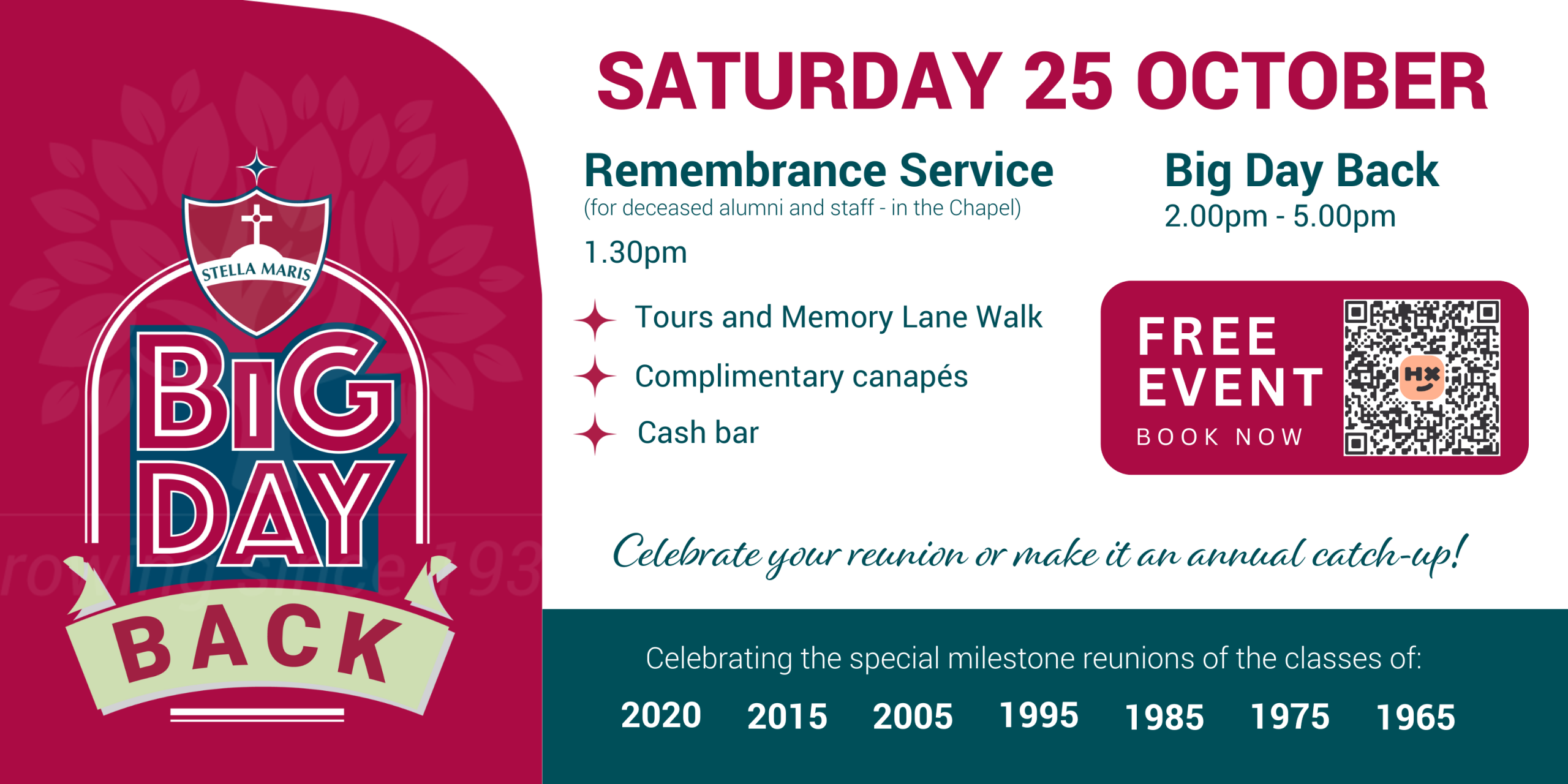 We especially welcome alumni celebrating milestone reunions. Why not kick-start your celebrations at the Big Day Back!