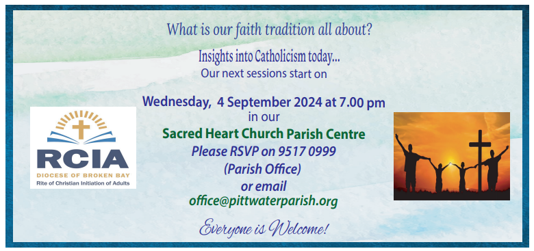 The next Community Mass will be held on Sunday 8 September from 5.00pm at St Kieran's Manly Vale. "Feel the joy. Be part of it." A barbecue meal will follow Mass. Duke of Edinburgh hours are available.