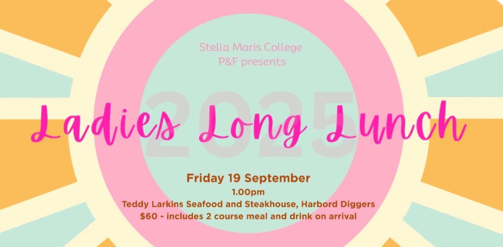 A sell-out Ladies Long Lunch will take place on Friday 19 September. We are looking forward to seeing you all at Teddy Larkins at 1pm!