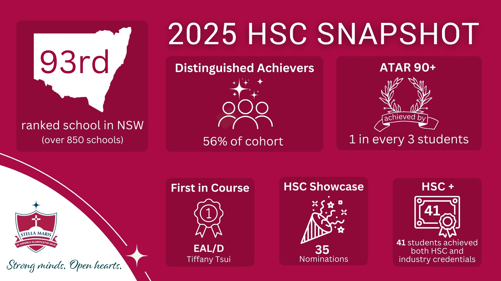 It is with great joy and pride that I congratulate the Class of 2025 on the release of their Higher School Certificate results. These achievements reflect not only academic accomplishment, but the determination, discipline, and integrity with which our students have embraced the final chapter of their schooling at Stella Maris College.